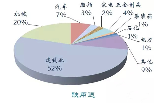 鋼鐵是工業(yè)化過程中最重要的原材料之一,我國消費(fèi)鋼鐵最主要的部門是建筑行業(yè)。2014年我國鐵礦石儲(chǔ)量230億噸,產(chǎn)量15億噸。