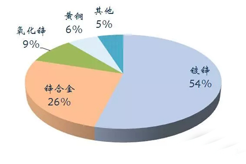 中國鋅消費(fèi)超過50%用于鍍鋅。2014年我國鋅儲(chǔ)量4300萬噸,產(chǎn)量500萬噸,消費(fèi)642萬噸。